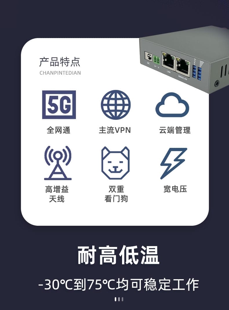 支持全网通5G并向下兼容4G/3G,手机卡、物联网卡、APN 专网卡可用