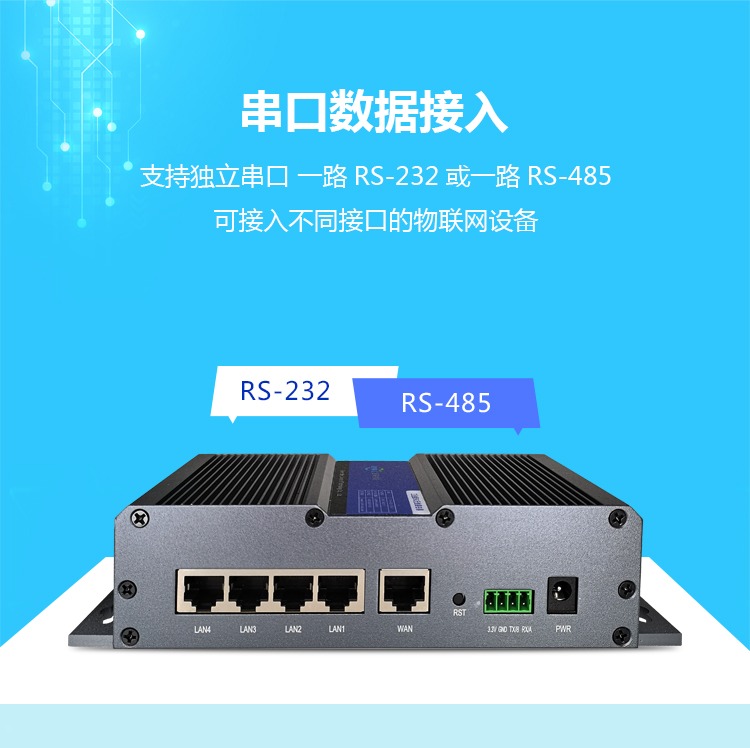 提供标准RS232 or RS485串口,支持串口DTU(数据传输终端)功能