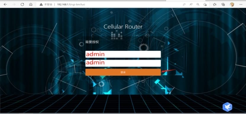 (2)打开浏览器,输入:192.168.1.1(默认地址,如有修改,请先查看电脑本地连接处的实际网关ip地址),回车,输入默认的登录用户名、密码:admin/admin,点击“登录”,最后进入到工业路由器的配置管理页面。
