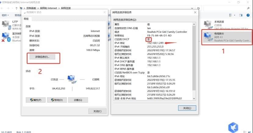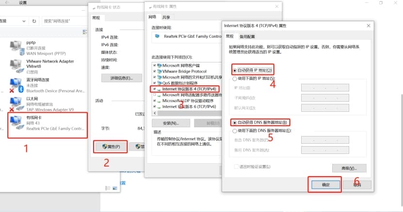 (1)工业路由器插好4G卡,安装好网络天线;然后将工业路由器的Lan口连接到电脑网口,同时电脑网络共享中心的本地连接设置自动获取;