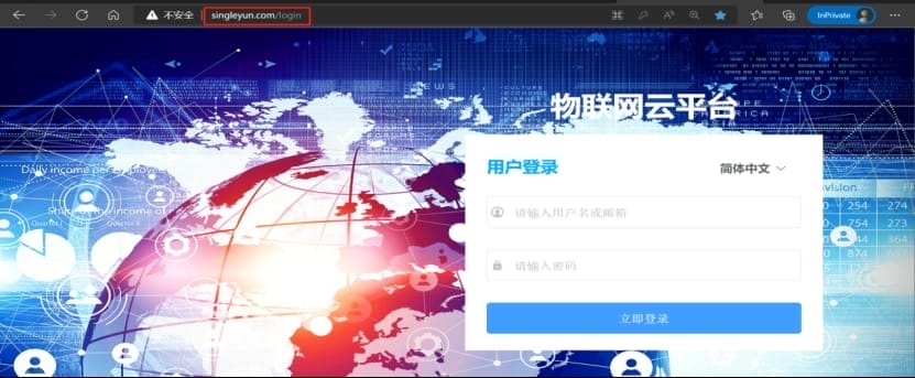 (1)云平台登录,浏览器打开 http://singleyun.com/ ,输入用户名和密码。