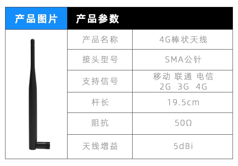 ZLWL/智联 4G5G天线5dBi外置信号增益天线SMA接口CDMA/GPRS/GSM/WCDMA/LTE/2G/3G/4G/5G全频棒状天线