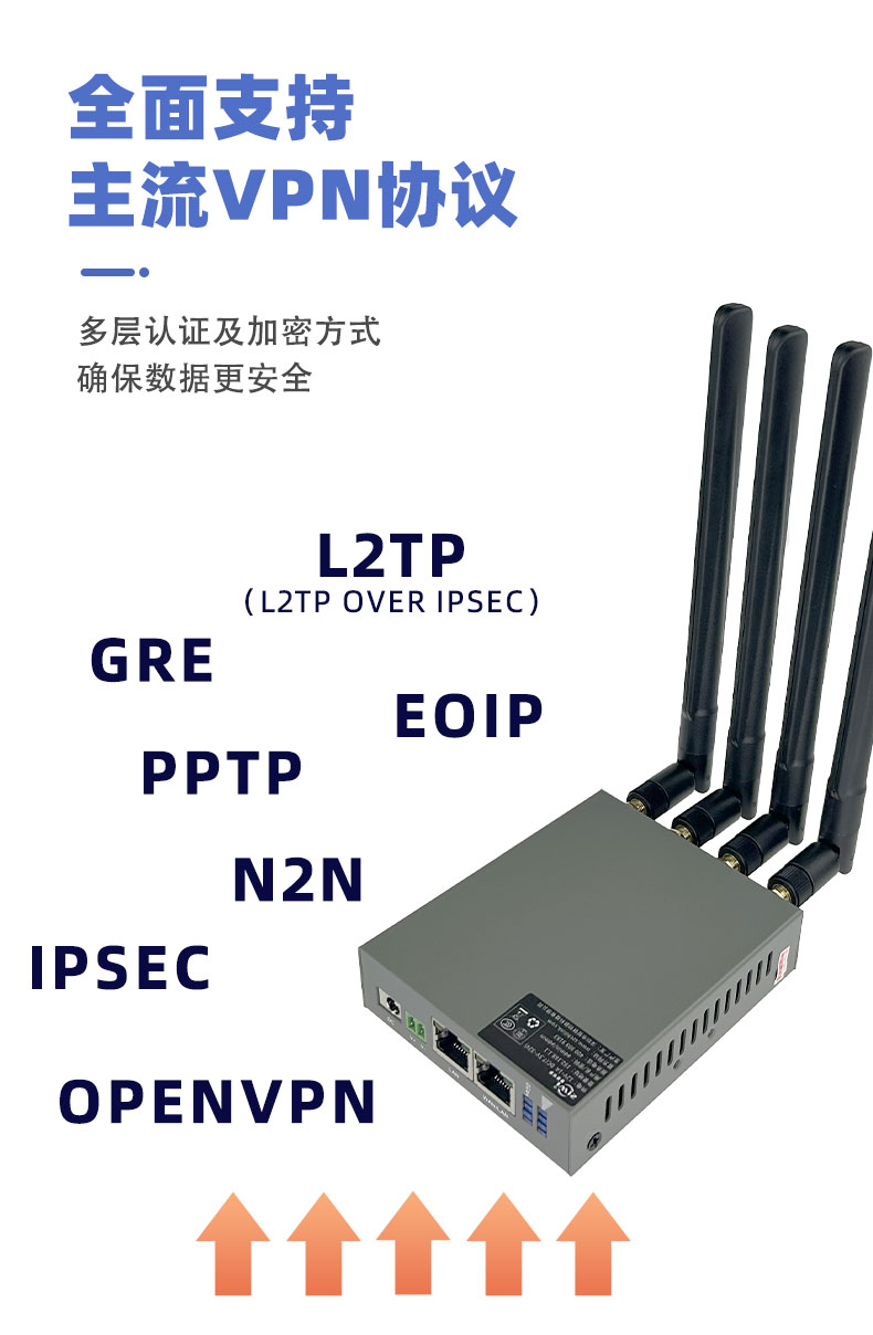 支持六种VPN(GRE、PPTP、L2TP、IPSec、N2NVPN、OpenVPN)