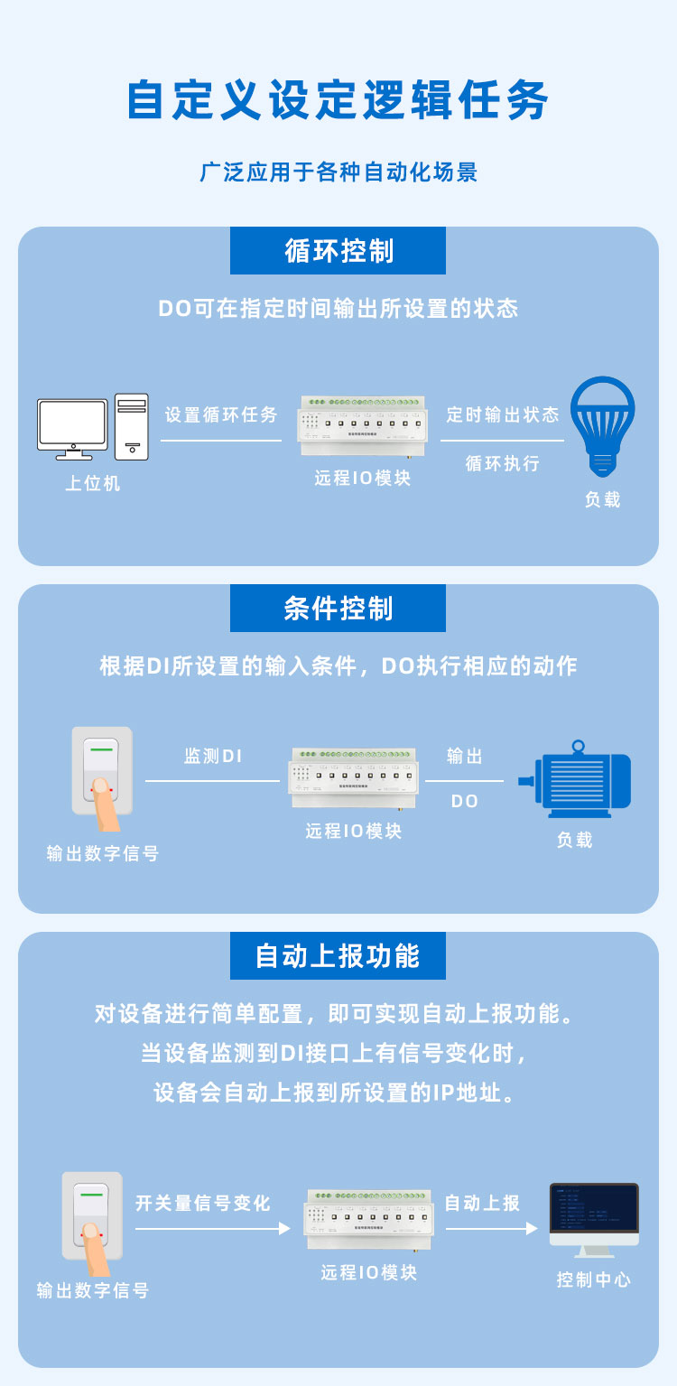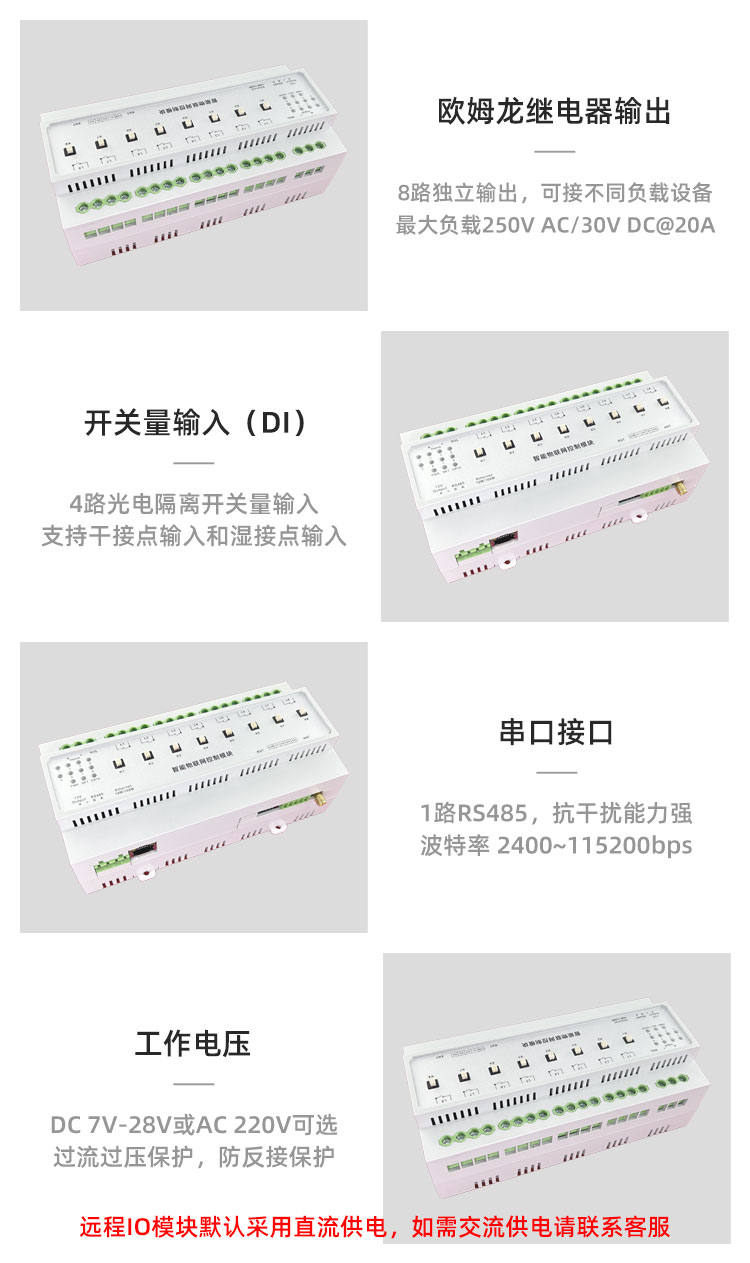 CC4800J是一款支持以太网有线网络交互的远程IO控制模块,可结合智能边缘终端为用户提供长距离数据采集及传输功能;提供4路开关量信号采集,可以接各种传感器的开关量信号,8 路继电器输出,可用于外部设备的开关控制;提供1 路RS-232/485接口,可连接各种串口设备,如智能边缘终端、智能控制终端、PLC、单片机、智能仪表等;性能稳定,内置看门狗电路,保障在恶劣环境下也能长期稳定可靠工作;广泛应用于智能交通、门禁系统、考勤系统、工业自动化、智能建筑楼宇、消防、公共安全、数字化医疗、双碳系统等场所。