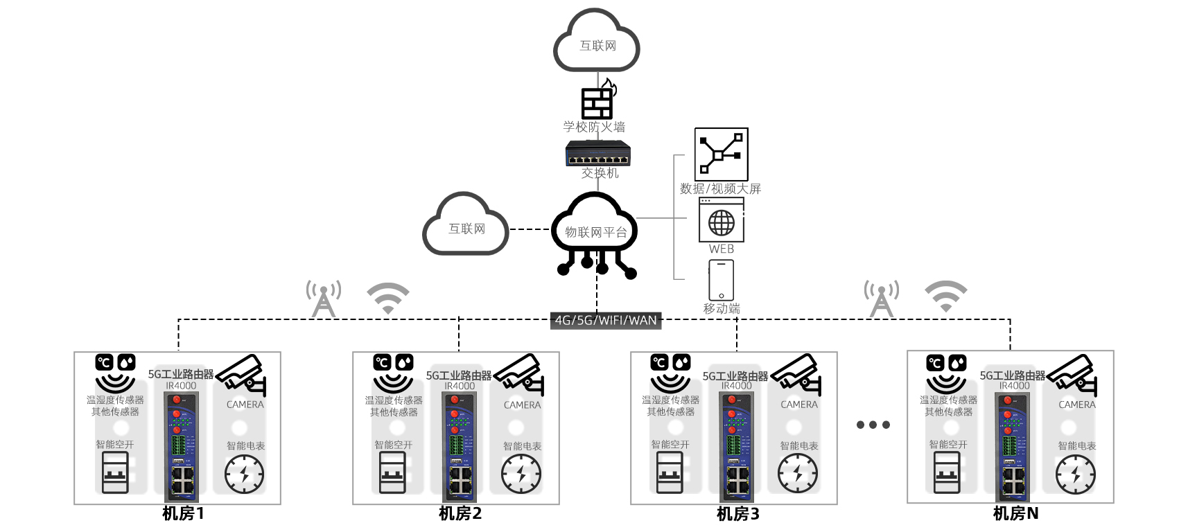 随着社会日益发展及科学网络技术进步,对于各小中高院校对于校区机房基础设施数据统一采集及视频监控存在的维护难点,痛点,数据无法及时上报远端中心查看调度及现场监控难免存在部分响应调度迟滞,诸如此类问题日益变得更加突出。因此为了提升项目维护管理的数字化,智能化,网格化,特催生如下校区机房综合网络管理应用系统。