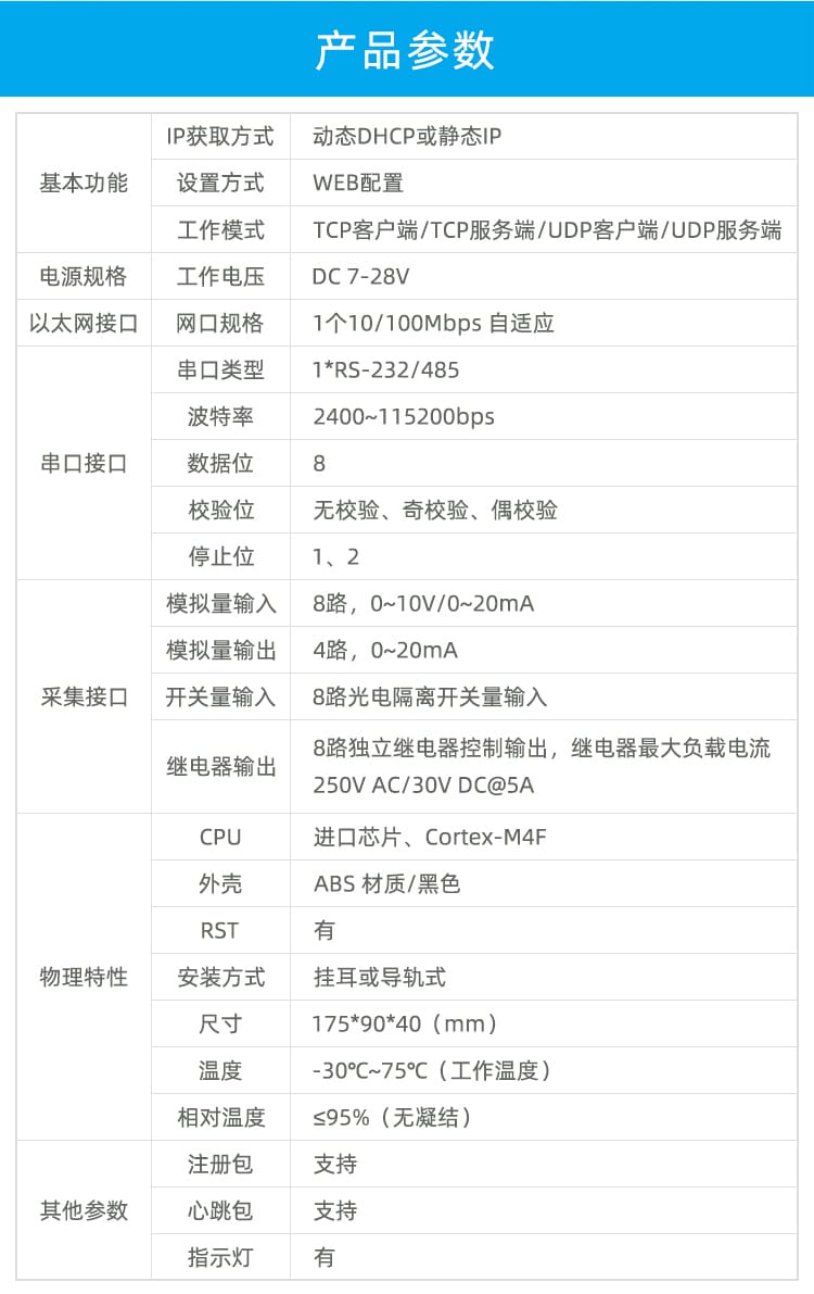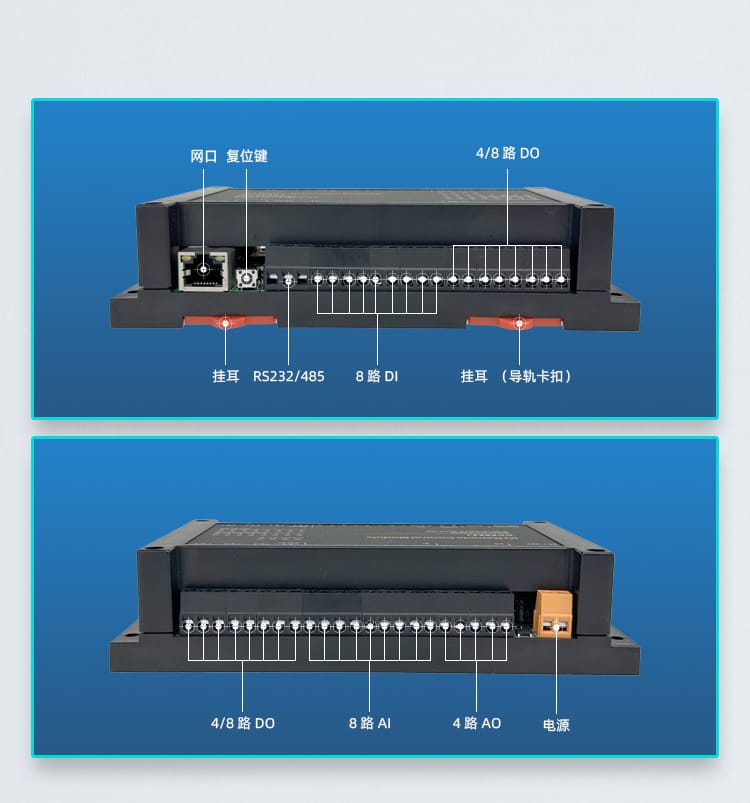 1路RS232/485,8路AI,4路AO,8路DI,8路DO;