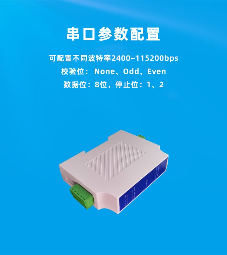串口波特率可设2400bps到115200bps,支持None,Odd,Even校验。