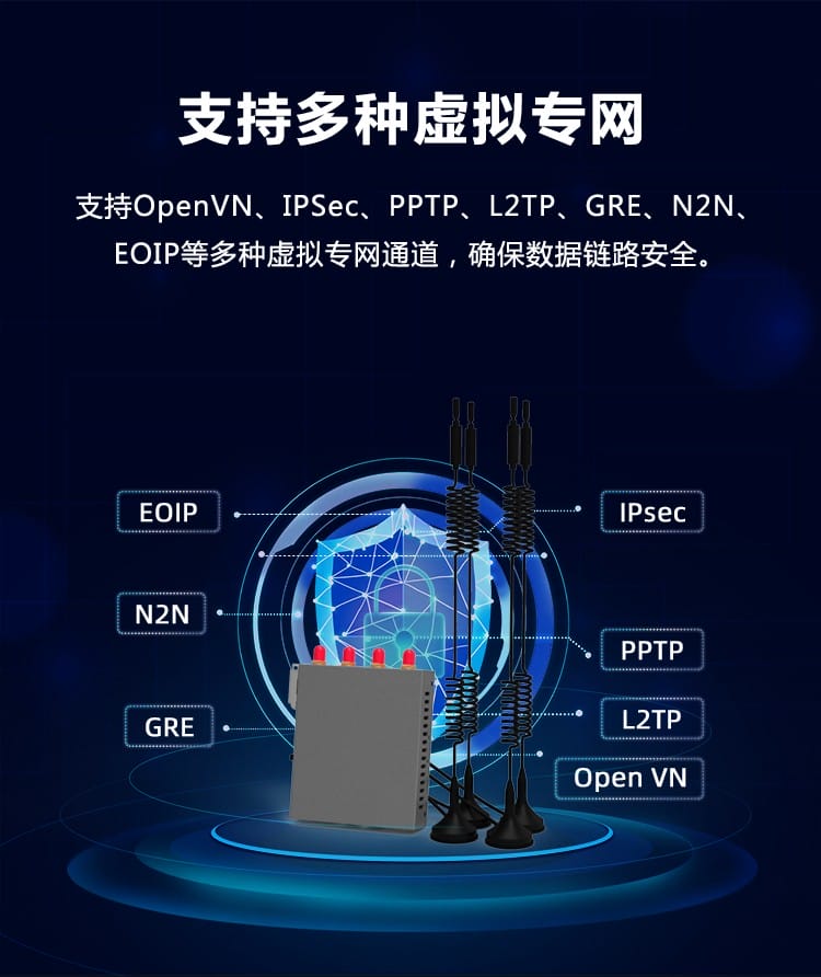 支持六种VPN(GRE、PPTP、L2TP、IPSec、N2NVPN、OpenVPN)