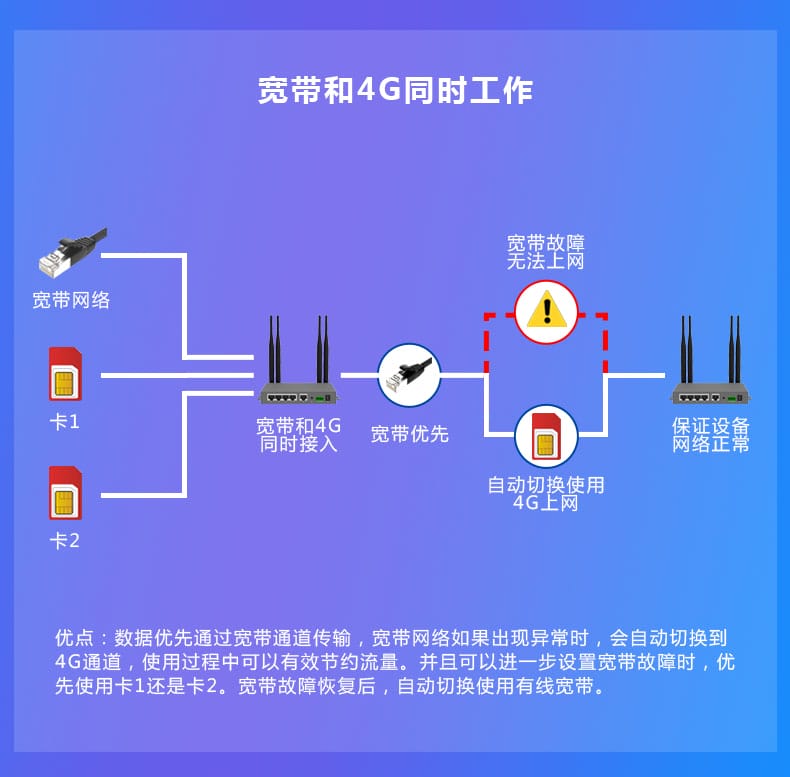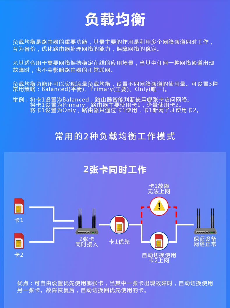 支持负载均衡,WAN、WLAN、4G多网同时在线,多网互为备份。【可选】