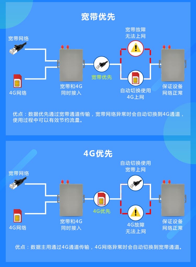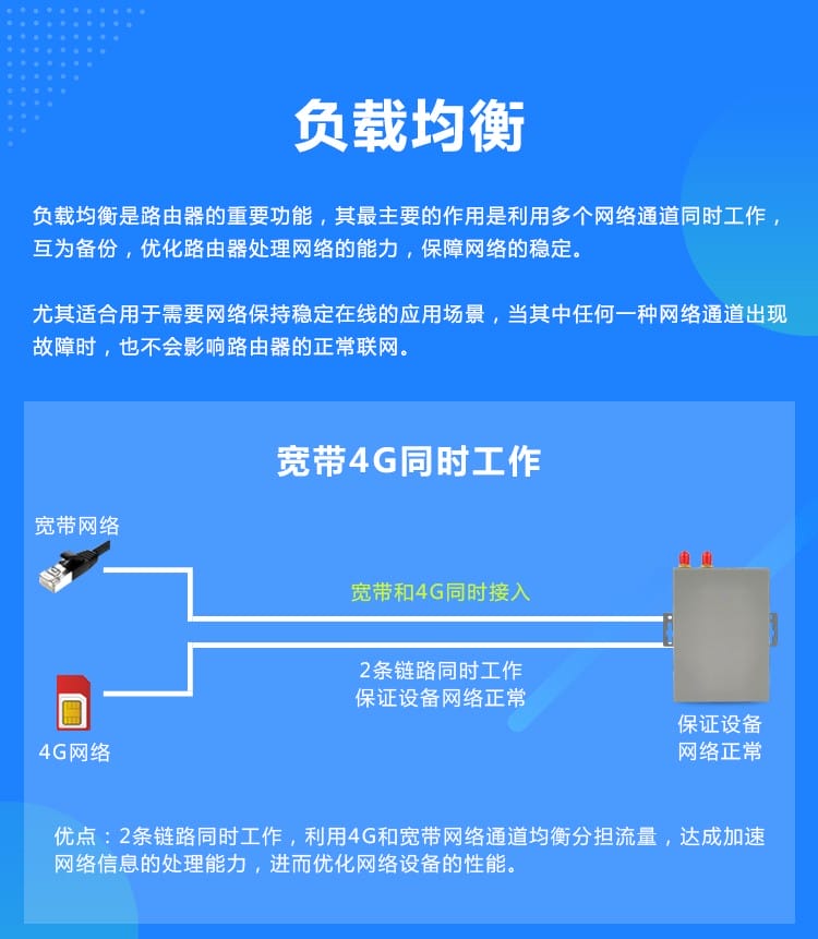 支持负载均衡,WAN、WLAN、4G多网同时在线,多网互为备份。【可选】
