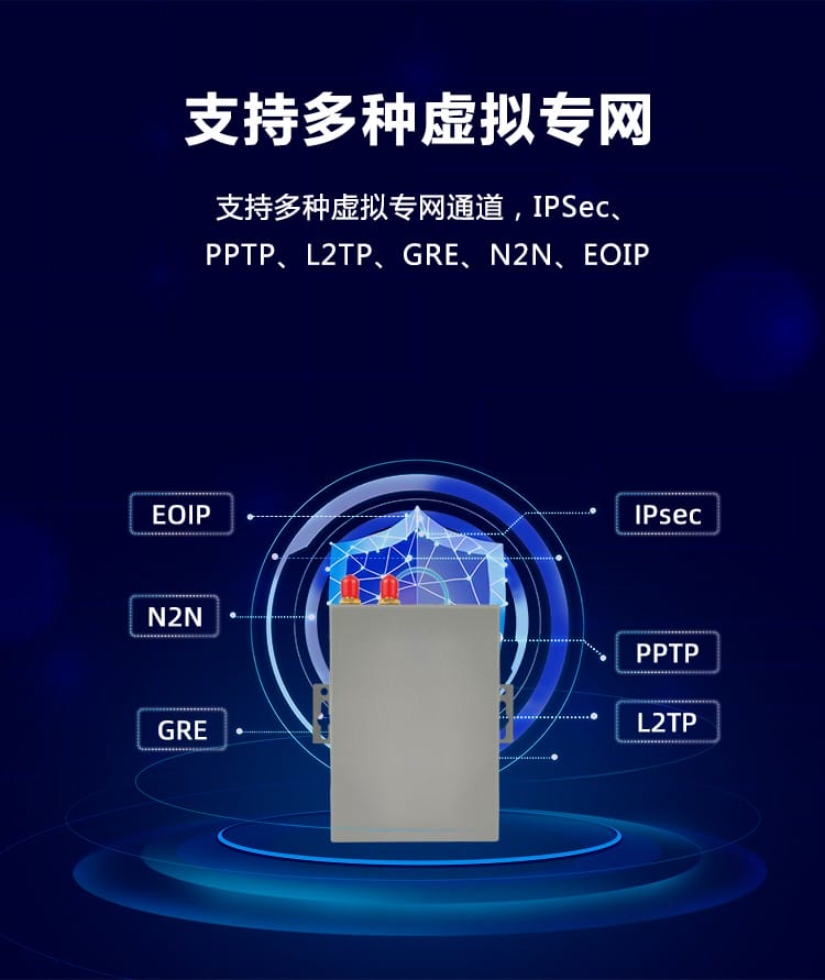 支持7种VPN客户端,GRE、PPTP、L2TP、IPSec、EOIP、N2N VPN、OpenVPN。