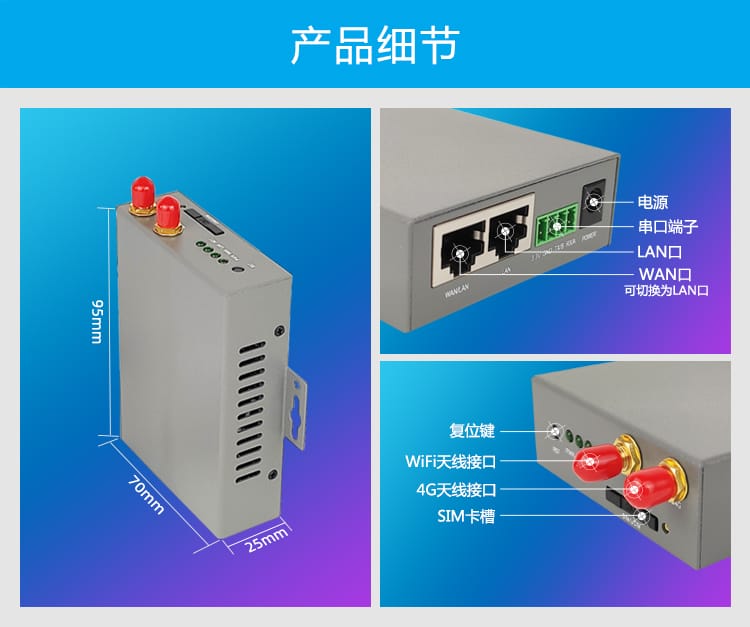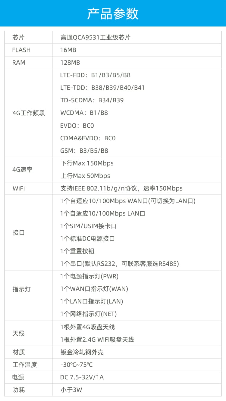 具有RS232或RS485串口,支持串口透传、MQTT协议、Modbus协议。