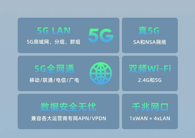 支持5G NSA和SA网络,向下兼容4G/3G