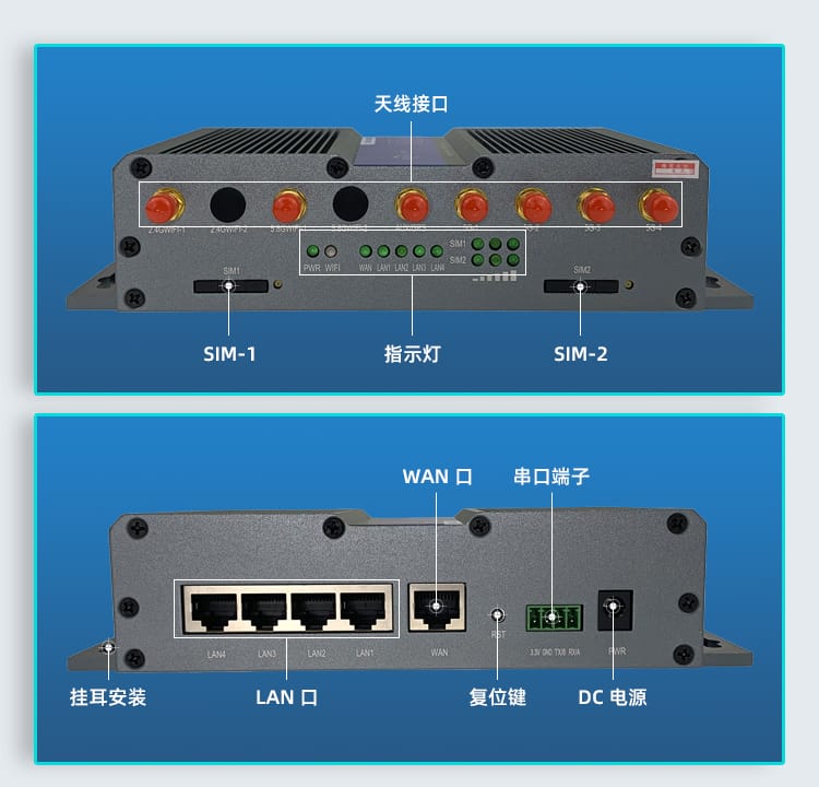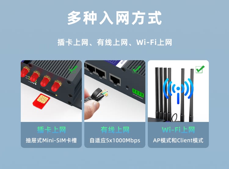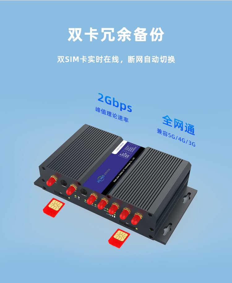 支持双卡网络备份,其中一张卡断线后自动切换另一张卡