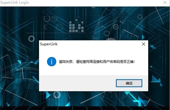 Superlink工具登录失败,一直提示请检查网络连接或账号密码信息,出现这个情况时,请分别确认如下问题: 1.首先确认电脑端可以正常访问互联网; 2.严格确认账号或密码信息是否完全正确(具体账号信息请查看远程网关背面标签),包括大小写信息及是否有空格出现。